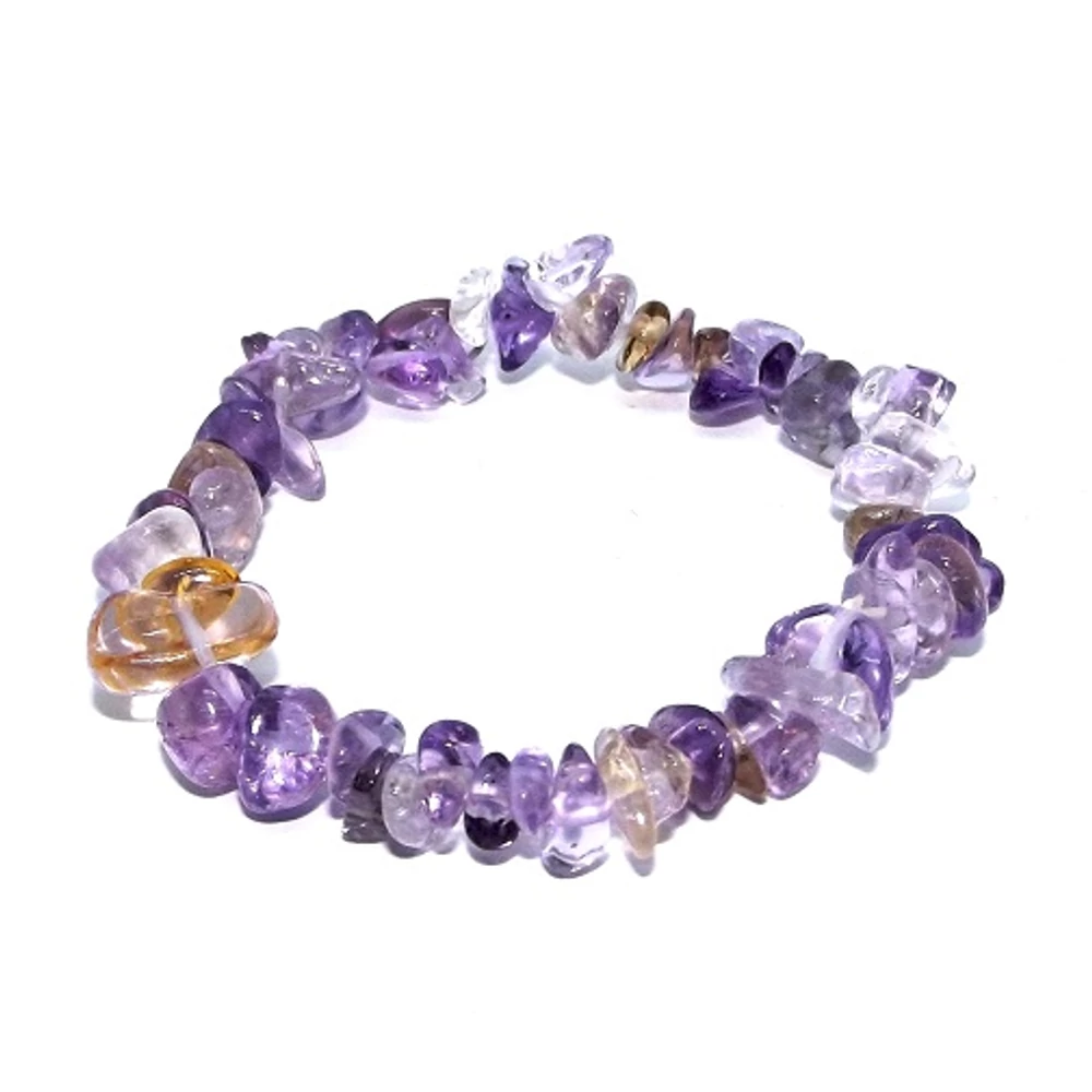 Az ametrin nagyon hatásos módon kombinálja az ametiszt és a citrin tulajdonságait. Ez a kő akkor jön létre mikor az ametiszt kristályosodott változatának túlhevülése megáll félúton a citrinné válás közben, így félig ametiszt félig citrin kristály alakul ki. Segítségével összekapcsolhatjuk a magasabb világokat a földi tudattal. Képes az asztrális utazások felerősítésére és a legnagyobb védelemmel lát el ezen idő alatt. Képes megtisztítani az elmét a nem kívánt és káros gondolatoktól, nyugtalanságtól és stressztől. Egyesíti a női és férfi energiákat, a tökéletes aranyközépút felé vezet. Az elfogadásra ösztönözi birtokosát, segít felismerni milyen módon, kapcsolódunk egymással. Hatalmas energiák dolgoznak benne, ezt képes energetikai és fizikális szinten is átadni tulajdonosának. Oldja az érzelmi blokkokat és a berögzült negatív mintákat. Erős a kedélyjavító hatása és veszteség esetén is nagy segítséget nyújt. Fizikai szinten jó hatással van immunrendszerre, gyomor problémákra, kifejezetten a gyomorfekélyre, emésztési zavarokra, migrénes fejfájásra.