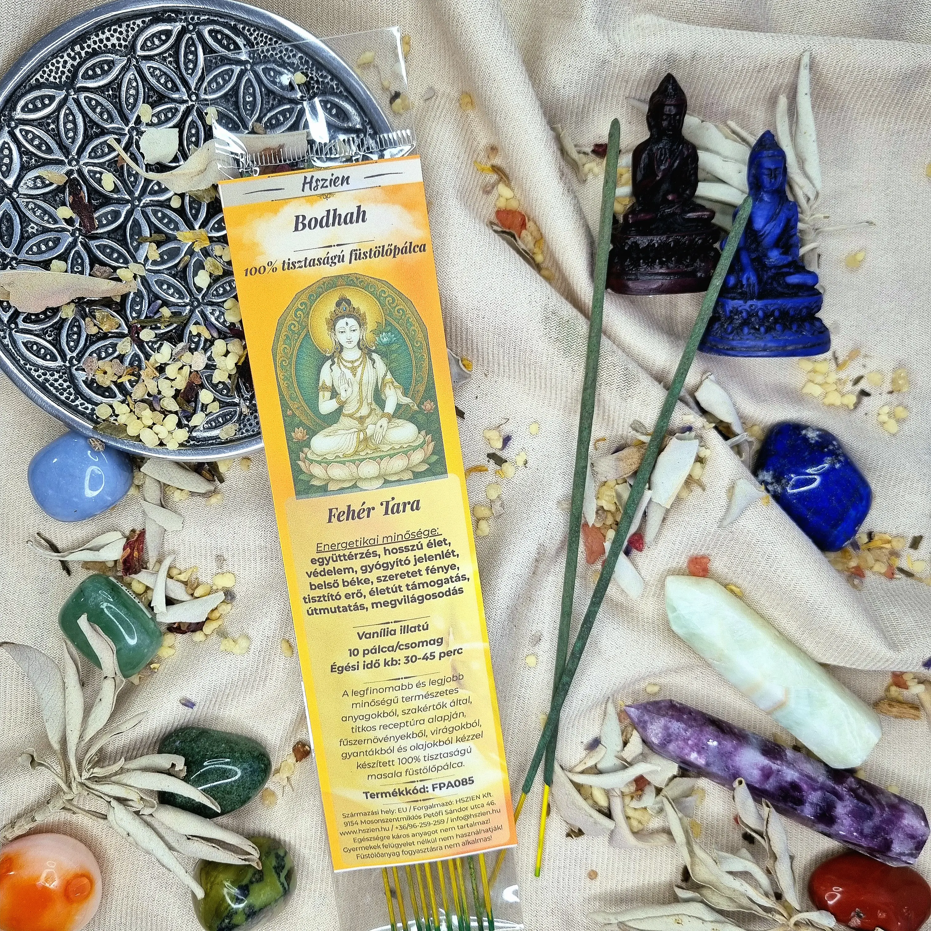 Fehér Tara az együttérzés és a gyógyító jelenlét megtestesítője, aki óvó, támogató energiáival a hosszú élet, a belső béke és a szeretet fényének megtapasztalását segíti. Energiái védelmet nyújtanak a mindennapok kihívásaiban, miközben tisztító erővel hat a testre, lélekre és szellemre egyaránt. Jelenléte támogatja életutunkat, segít felismerni a helyes irányt, és finom útmutatást nyújt a döntésekhez, a nehéz helyzetek megoldásához. Fehér Tara energiái elősegítik a gyógyulást, a lelki tisztulást és a belső harmónia megteremtését, miközben finoman vezetik a szellemi fejlődést és a megvilágosodás felé vezető utat. Általa az ember képes kapcsolódni a szeretet, a bölcsesség és az isteni fény magas rezgéseihez, és megtapasztalhatja a belső béke és harmónia mély, hosszan tartó állapotát.