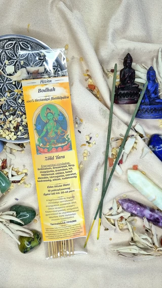 Zöld Tara az önbizalom, az önszeretet és a belső fény megtestesítője. Energiái segítenek leküzdeni a félelmeket, oldani a szorongást, és támogatják a belső ébredést, hogy a lélek könnyebben kapcsolódhasson a magasabb tudatossághoz. A Zöld Tara a tiszta szeretet hordozza, ösztönöz a kedvességre, az alázatra és a tudatosságra, miközben erősíti hitünket, belső bátorságunkat és lelki stabilitásunkat. Jelenléte segíti a megújulást, a harmónia megteremtését, az érzelmi egyensúly fenntartását, és lehetővé teszi, hogy a mindennapi élet kihívásait békével, szeretettel és bölcsességgel kezeljük. Általa könnyebb kapcsolódni a kollektív tudat energiáihoz, és a szeretetből fakadó cselekvések útján fejlődni.