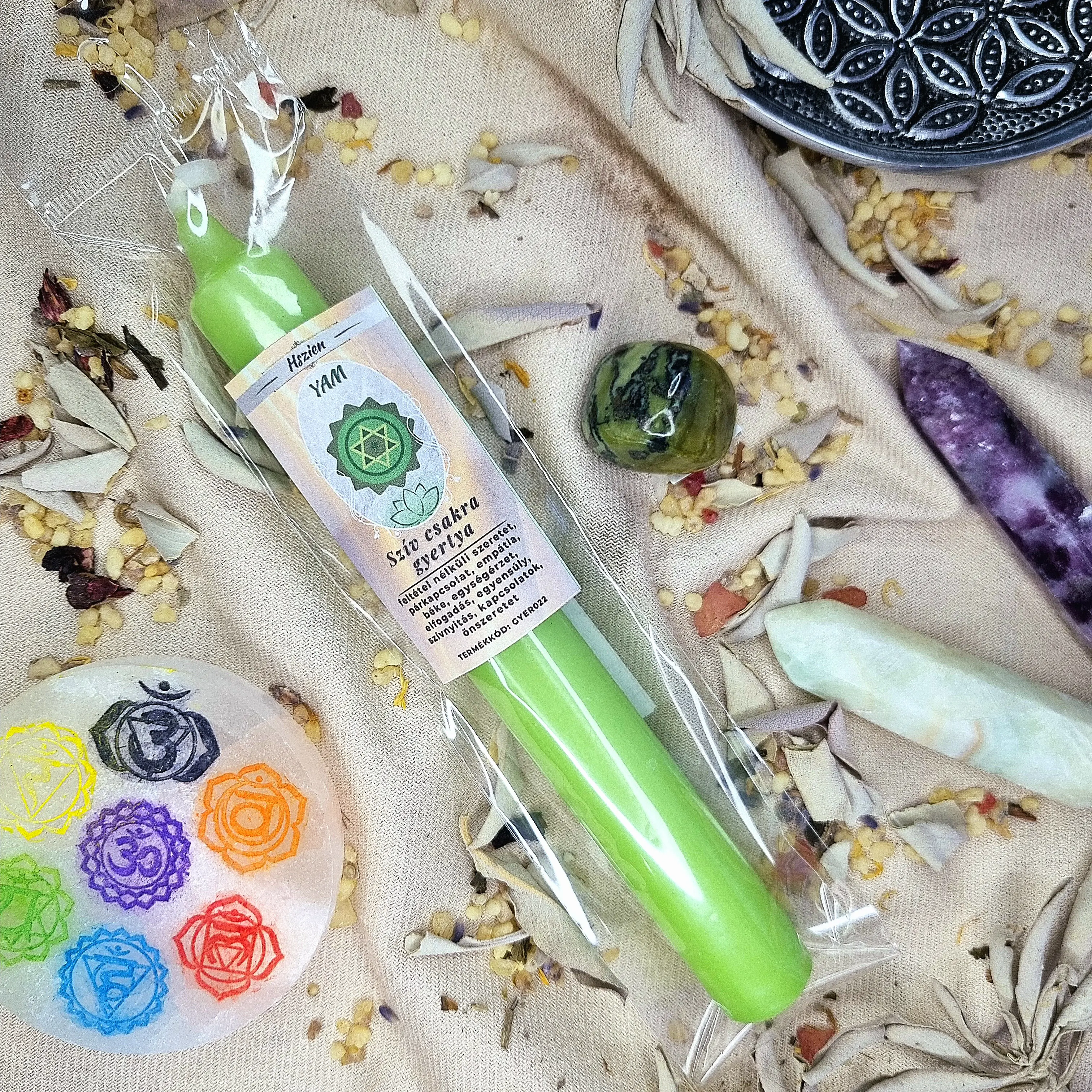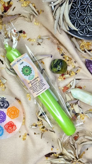 A csakra gyertya egy különleges, energetikailag megtisztított és a csakra színéhez, energiáihoz és rezgéséhez hangolt mágikus eszköz. Minden gyertya a hozzá tartozó energiaközpont tisztítását, harmonizálását és aktiválását támogatja, így meggyújtásakor a csakra fényét és erejét hívjuk meg az életünkbe. Alkalmazható meditációk, szertartások, gyógyító gyakorlatok vagy gyertyamágiák során, de akár egyszerűen is, ha az adott csakra energiáit szeretnénk felszabadítani és élettel feltölteni. A gyertya lángja segít feloldani az elakadásokat, harmonizálja az energiákat, és támogatja a belső egyensúly és nyugalom megteremtését. Az égetés ereje tovább fokozható, ha szent sóba helyezve használjuk, így a gyertya fényenergiája erőteljesebb és tisztító hatása mélyebb lesz. Tudatos használatával tested, lelked és szellemed újra összhangba kerül, és a csakrák rezgése aktiválódik, támogatva a teljes harmóniát és a belső erőt.