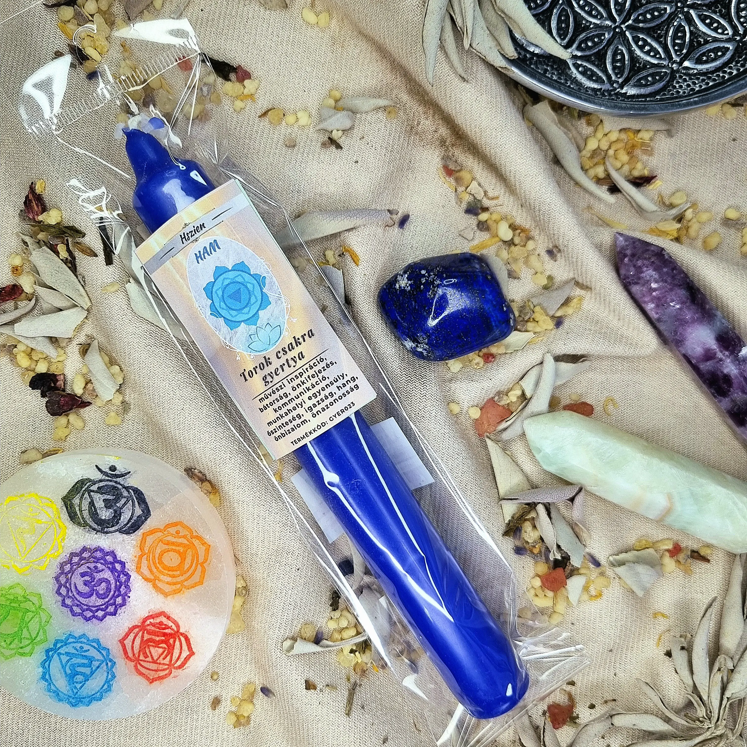 A csakra gyertya egy különleges, energetikailag megtisztított és a csakra színéhez, energiáihoz és rezgéséhez hangolt mágikus eszköz. Minden gyertya a hozzá tartozó energiaközpont tisztítását, harmonizálását és aktiválását támogatja, így meggyújtásakor a csakra fényét és erejét hívjuk meg az életünkbe. Alkalmazható meditációk, szertartások, gyógyító gyakorlatok vagy gyertyamágiák során, de akár egyszerűen is, ha az adott csakra energiáit szeretnénk felszabadítani és élettel feltölteni. A gyertya lángja segít feloldani az elakadásokat, harmonizálja az energiákat, és támogatja a belső egyensúly és nyugalom megteremtését. Az égetés ereje tovább fokozható, ha szent sóba helyezve használjuk, így a gyertya fényenergiája erőteljesebb és tisztító hatása mélyebb lesz. Tudatos használatával tested, lelked és szellemed újra összhangba kerül, és a csakrák rezgése aktiválódik, támogatva a teljes harmóniát és a belső erőt.