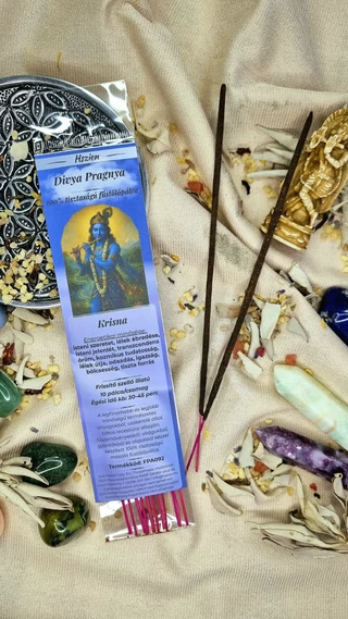 Krisna az isteni szeretet és az ébredő lélek szimbóluma, aki a transzcendens öröm és a kozmikus tudatosság energiáit közvetíti. Segít, hogy a lélek útja világossá váljon, miközben az odaadás, az igazság és a bölcsesség érzései erősödnek bennünk. Krisna jelenléte támogatja, hogy a szívünkben tisztán forrásozó szeretetet tapasztaljunk meg, és ezáltal harmonikusan kapcsolódjunk az isteni erőkhöz. Általa felismerhetjük saját belső fényünket, és képesek vagyunk tudatosan élni az élet minden pillanatát, miközben lélekben emelkedünk és a spirituális fejlődés útját járjuk.