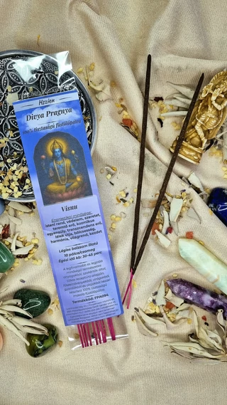 Visnu az isteni rend és a kozmikus egyensúly őrzője, aki a világ harmóniáját fenntartva vezeti a lelkeket a megvilágosodás útján. Ő testesíti meg a szeretet és a védelem isteni erejét, mely minden élőlényt körülölel és megtart. Visnu energiája a teremtés és a fenntartás szent egyensúlyát sugározza, ahol a világrend nem külső szabály, hanem belső harmónia. Az ő fénye a lélek útját világítja meg, miközben segít felismerni az egységet mindenben, ami létezik. Aki kapcsolódik Visnu rezgéséhez, az megtapasztalhatja a transzcendens erő nyugalmát, a bölcsesség csendes áramlását és a kezdet isteni pillanatának örök erejét. Visnu jelenléte emlékeztet arra, hogy az isteni rend mindig működik, bennünk, körülöttünk és az egész világegyetemben.