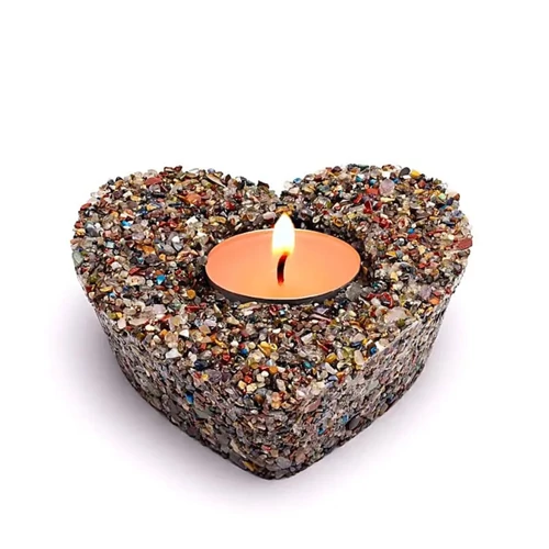 Szív alakú mécsestartó - apró szemű kristályokból - Mix