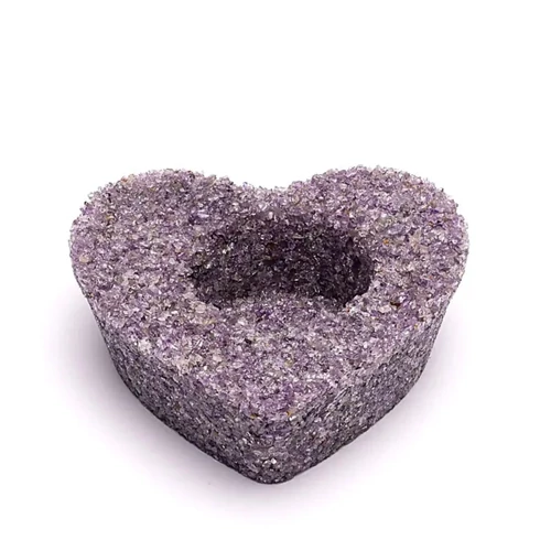 Szív alakú mécsestartó - apró szemű kristályokból - Ametiszt