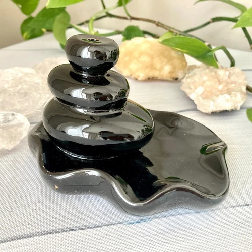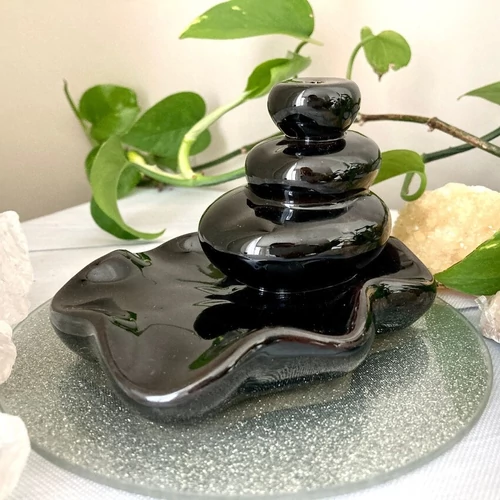 Back Flow - ZEN kőrakás - fekete porcelán - lefelé áramló füstölőtartó
