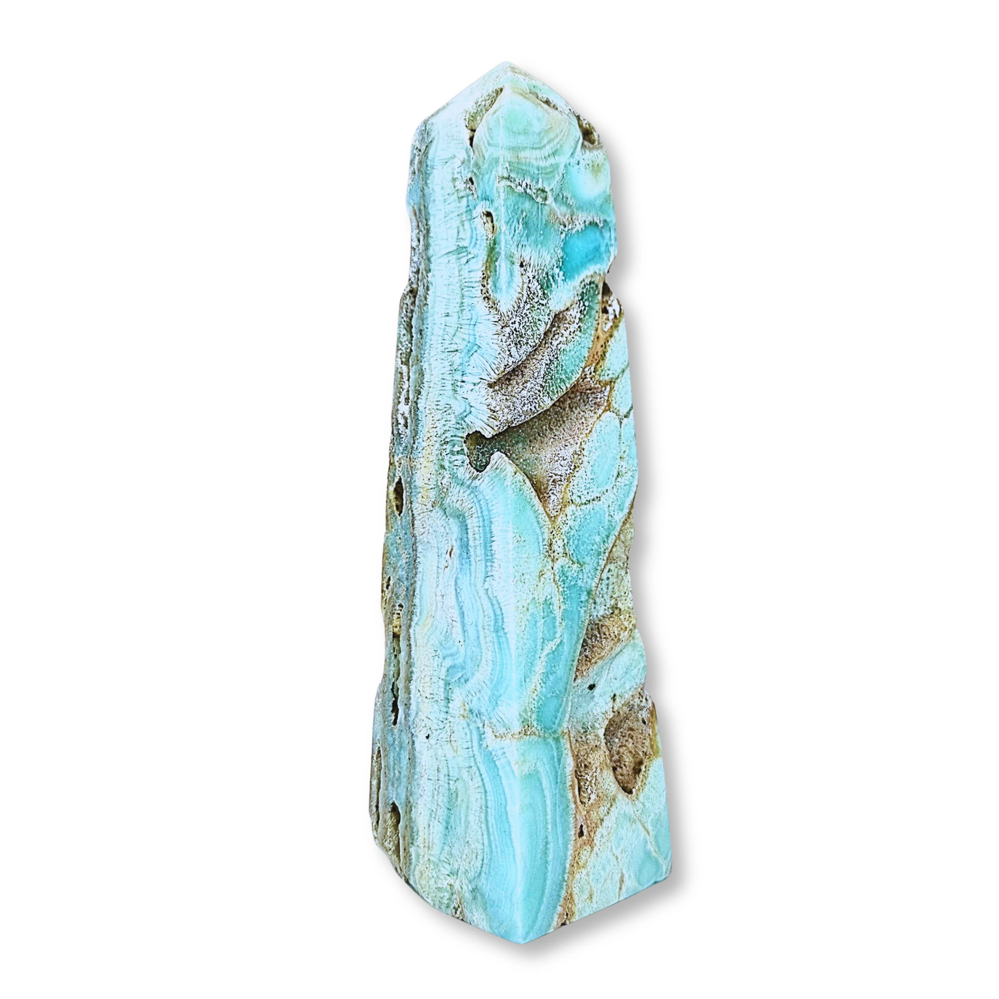 A kék aragonit csodás tengerpartra vagy a mennyei égre emlékeztető kék árnyalatát a benne található réznek köszönheti, mely ezáltal az egyik leghatékonyabb energiavezetővé teszi. Maga a kő a hatalmas és szépséges Vénusz istennő minőségével áll kapcsolatban, ez abból is adódik, hogy a réz, mint fém őhozzá kapcsolódik, úgy tartja a hagyomány szent anyag számára. Képes harmóniát teremteni a finom és a fizikai test energiái között. A yin és a yang energiát is egyensúlyba hozza, és megtanítja őket megfelelő módon használni. Tökéletes egységet hoz létre a szív, a torok és a harmadikszem csakra között, így egy erős spirituális tudatosságot és életszemléletet segít megtanulni. Segít felül emelkedni a negatív gondolatokon és a pesszimista személyiség mintákon. A valódi lelki célok fel vezet, felismerteti azokat és a vele való munka során megérthetjük fontosságukat életünkben. Fizikai szinten a légzőszervek, a torok, a vérkeringés megbetegedés esetén tud segítséget nyújtani.