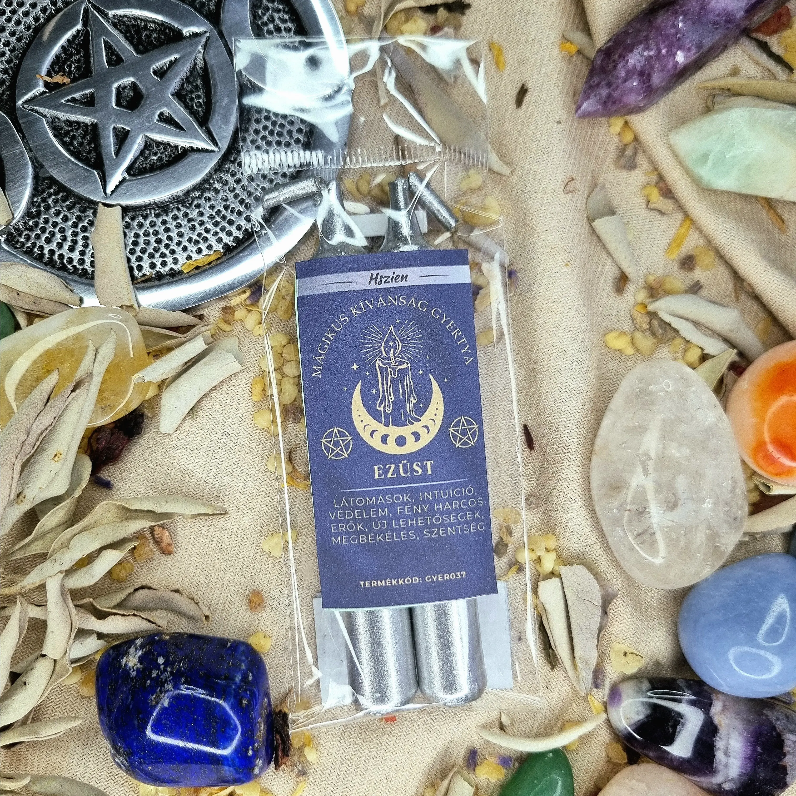mágikus kívánság gyertya egy különleges, rituálisan megtisztított és színrezgésekhez finoman hangolt spirituális eszköz, mely a teremtés, a manifesztáció és a szándék erejét hordozza. Nem csupán gyertya, hanem egy energiahordozó kapu, amely a lángon keresztül kapcsolatba lép a finomenergiák világával, és közvetíti a benned megszülető kívánságot az univerzum felé. Belső magja színtelen, tiszta, úgynevezett nullponti energia-minőségű parafinból készült, amely önmagában semleges, így képes bármilyen szándék befogadására és felerősítésére. Külső rétegét a megfelelő színnel vontuk be, majd a gyertyát az adott szín spirituális frekvenciájához hangoltuk – így minden egyes darab önálló energetikai mintázattal és erővel rendelkezik. Amikor meggyújtod, lángja hidat képez a fizikai és a finomenergetikai síkok között, felerősítve a kimondott vagy átélt kívánság rezgését. A gyertya fénye a teremtés szimbólumaként segíti, hogy szándékaid tisztán és erővel jussanak el a mindenségbe. A mágikus kívánság gyertya ideális gyertyamágiákhoz, rituálékhoz vagy bármely olyan alkalomhoz, amikor tudatosan szeretnéd megteremteni azt, amire szíved mélyén vágysz.
