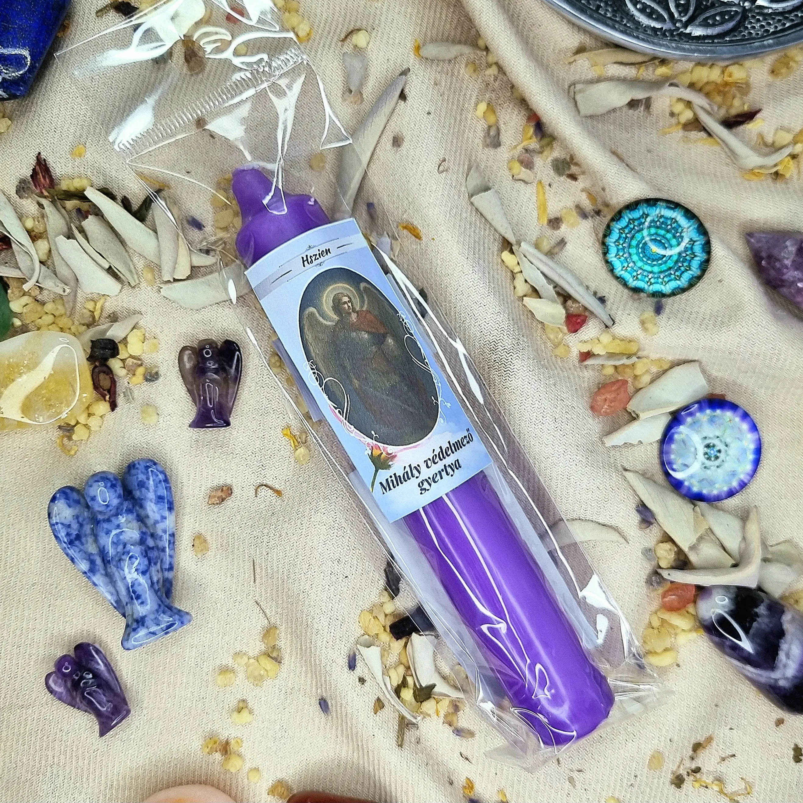 Használata: Helyezzük a gyertyát egy gyertyatartóba (erejét növeli, ha szent sóba szúrva égetjük), gyújtsuk meg, majd szólítsuk meg Mihály arkangyalt és mondjuk el neki kérésünket. A gyertyát maximum 1 alkalommal lehet eloltani és újra gyújtani!