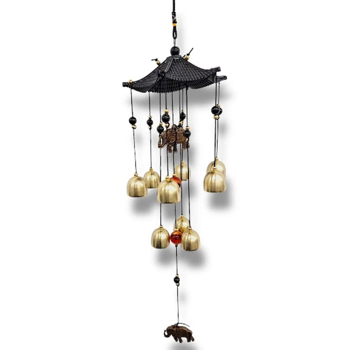 Kellemes csilingelő hangú fém elefánt szélcsengő. A alkotórészei bronz és réz színűek, ezzel megidézve az ősi buddhista kultúra világát és misztikumát. A hagyomány úgy tartja, hogy a szélcsengők, főleg ha az kagylóból, fából, bambuszból, kristályból vagy rézből készült távoltartja a rossz szellemeket.
