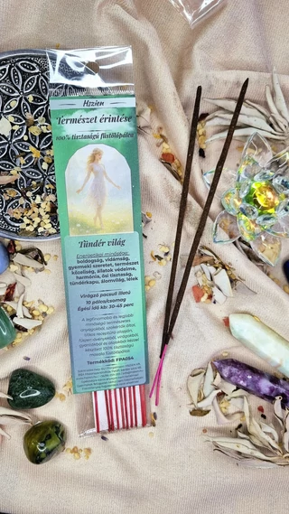 A Természet érintése sorozat a természet időtlen varázsát és ősi erejét hozza el otthonodba. Illatkompozíciói mélyen kapcsolódnak a Föld forrásenergiájához, a tiszta, természetes létezés állapotához. Minden egyes darab a természet egy-egy arcát idézi meg - az erdők nyugalmát, a virágok finom leheletét, a föld illatát eső után, vagy a hegyek tiszta, friss levegőjét. Ahogy illata lassan szétárad a térben, lágyan átjárva a környezetet és a lelket. Segít elcsendesedni, visszatalálni önmagadhoz, és megnyílni a természet gyógyító, megtisztító ereje felé. A Természet érintése sorozat nem csupán illat, hanem szertartás - egy meghívás a belső harmóniához, a békéhez és az ősi forráshoz, amely minden élet alapja.