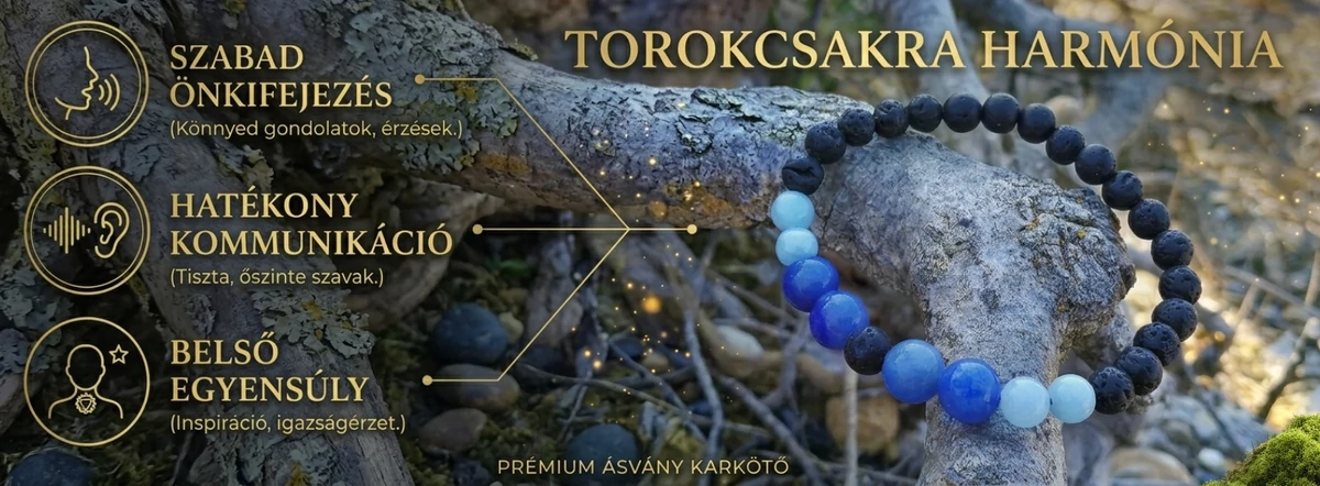 A torok csakra felelős a kifejezőképesség, a kommunikáció, az inspiráció, az igazság érzet, a gondolatok és az érzések közötti összekötő erőért. A torok csakrán keresztül fejezzük ki mindazt, ami bennünk van: vidámságunkat és szomorúságunkat, a szerelem, a boldogság, a félelem és a harag érzését, valamint gondolatainkat, meglátásainkat és belső világunk tapasztalatait. A karkötő segít a csakra energiáinak egyensúlyba hozásában, töltésében és tisztításában. A hozzá tartozó életterületek javításában és fejlesztő, számunkra hasznos megélésében és felhasználásában.